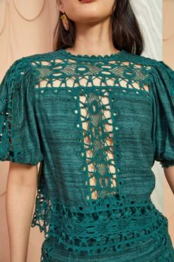 As featured in Look 35 of our Pre-Fall ’23 Lookbook, the Alessi Skirt is knitted in our fine-ribbed luxe merino wool blend. This rich green maxi skirt is a perfect layering piece, featuring an exaggerated ribbed waistband and mother-of-pearl buttons that trail down its front. Finished with a handkerchief hemline.
